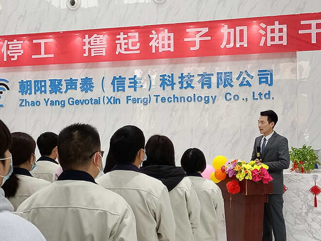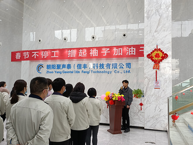 2022年2月8日,9:00農(nóng)歷大年初八,氣溫驟降,而在聚聲泰公司里卻有另一番景象,公司內(nèi)鞭炮共鳴,煙花齊放,迎來(lái)新年上班的開工第一天,開工儀式正式開始,總經(jīng)理郭橋生、副總經(jīng)理談國(guó)民先生作了重要講話,在公司研發(fā)大樓與公司管理層齊聚一堂,舉行了歡樂的開工儀式,總經(jīng)理郭橋生在儀式上,感恩聚聲泰家人們一年的辛勤付出,及對(duì)我們2022年的期望,指出2022年的工作目標(biāo)與要求,展示聚聲泰的核心價(jià)值觀:“相互尊重、全力以赴、引領(lǐng)創(chuàng)新、服務(wù)共享”。
