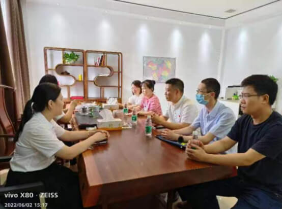 6月2日,信豐縣人民醫(yī)院第四支部書記鐘雷、耳鼻喉科主任羅金橋、院感科主任曹莉、耳鼻喉科護士長馮玉玲、四支部組織委員郭榮盛一行來到朝陽聚聲泰開展醫(yī)企對接交流,就“優(yōu)化營商環(huán)境,做實健康服務(wù)”主題與我公司支部組織委員黃麗麗深入交流。