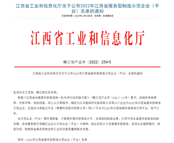 喜報!我司成功入選江西省服務(wù)型制造示范企業(yè)